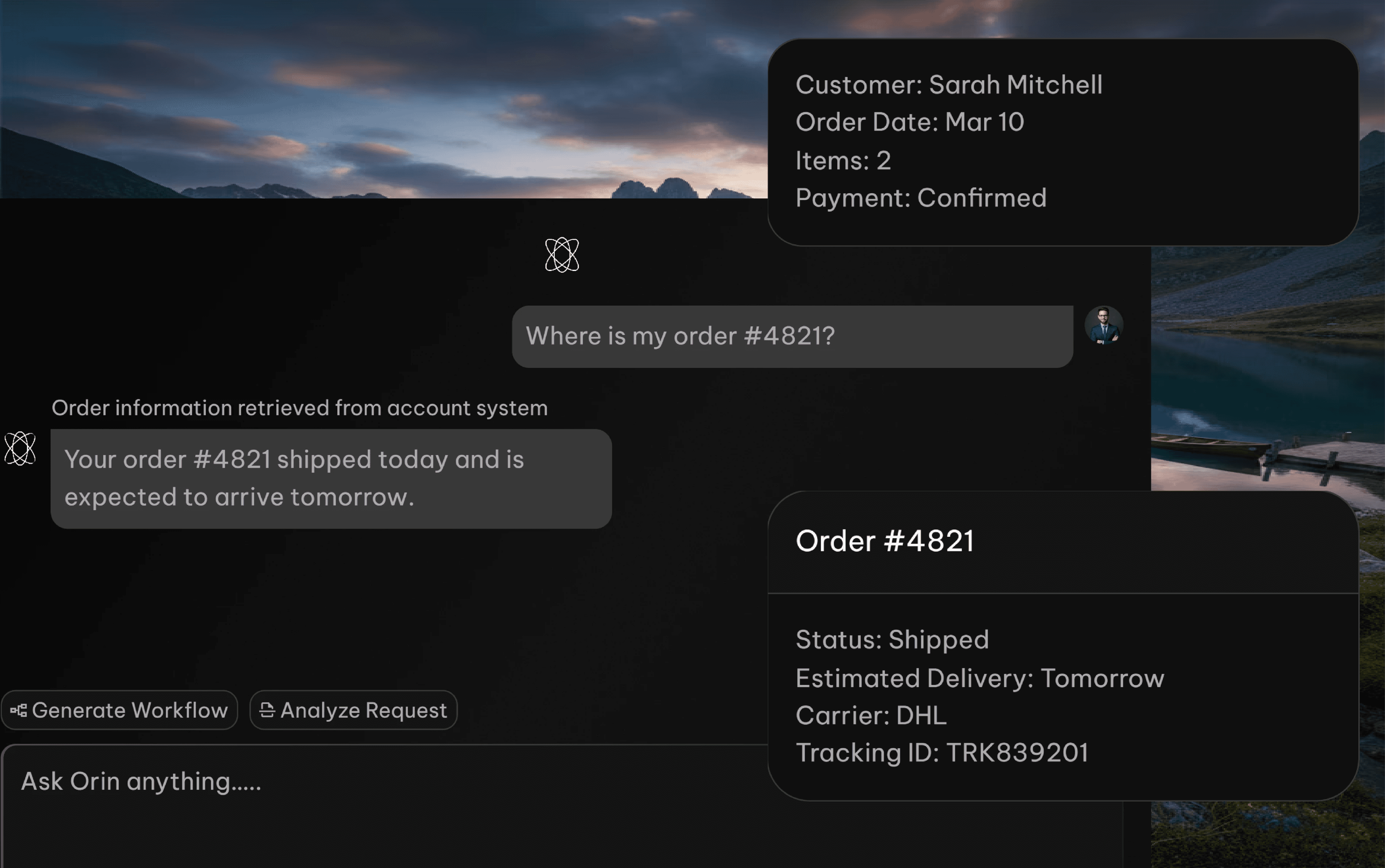 Orin manages routine support tasks and operational workflows so your team can focus on higher-value conversations.