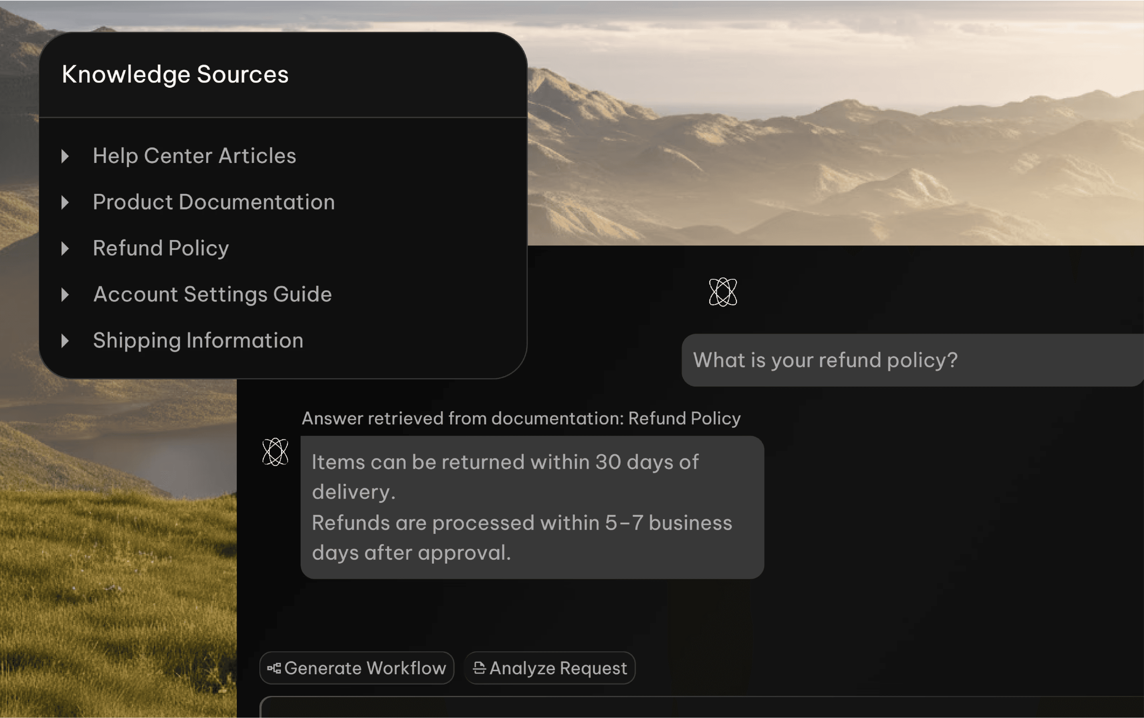 Pulls accurate answers instantly from your documentation and internal systems.